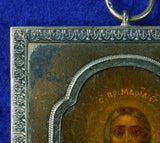 Antique 19 Century Imperial Russian Russia Mary Maria Icon Silver Frame