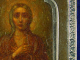 Original Antique 19 Century Imperial Russian Maria Icon in Silver Frame