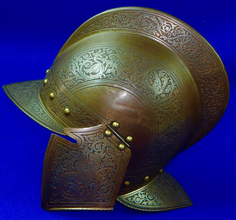 Antique 19 Cent Spanish Spain Italy Italian Engraved Victorian Medieval Helmet