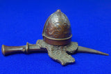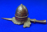 Antique 19 Century Turkish Middle East Bronze Helmet Knife Sword Paperweight