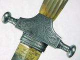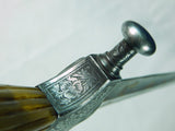 Original Antique French 19 Century Gold Etched Hunting Dagger