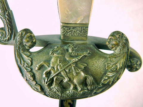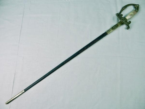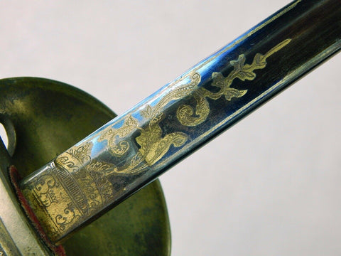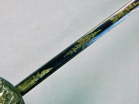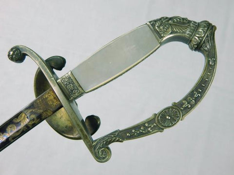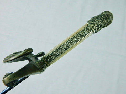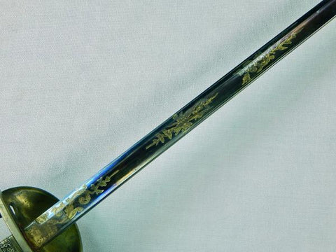 German Germany Antique 19 Century Gold Engraved Degen Court Sword w/ Scabbard