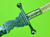RARE Antique Old 19C Italy Italian Waved Engraved Flamberge Blade Dagger Knife
