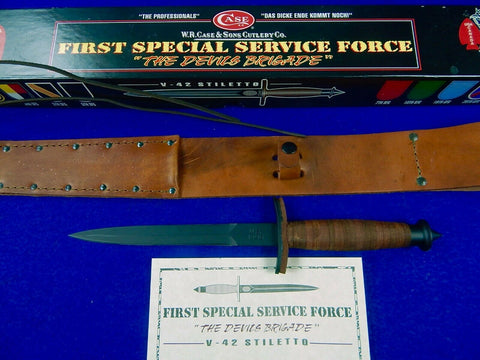 US 1998 Case V-42 Devils Brigade Stiletto Fighting Knife Knives Dagger Sheath Box Certificate