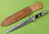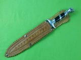 Vintage Mexican Mexico Knight Head Engraved Stiletto Fighting Knife & Sheath