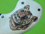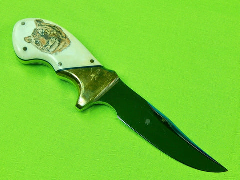 Vintage US Custom Made Norman Levine Tiger Scrimshaw Handle Knife