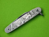 Vintage US Imperial Sterling Silver Dog Hunt Scene Folding Pocket Knife w/ Box